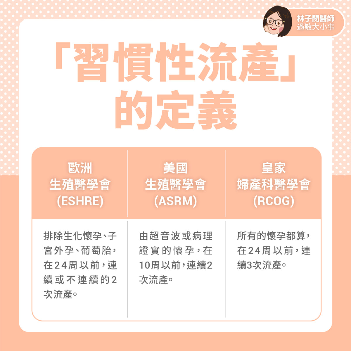 皇家婦產科醫學會(RCOG): 所有的懷孕都算,在24周以前,連續3次流產。