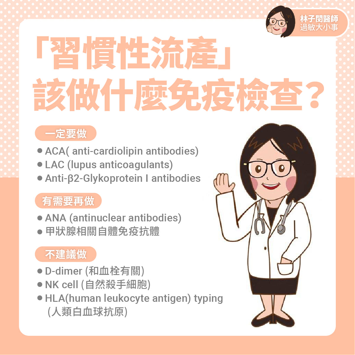 不建議做的檢查: D-dimer (和血栓有關),NK cell (自然殺手細胞) ,HLA(human leukocyte antigen) typing (人類白血球抗原)