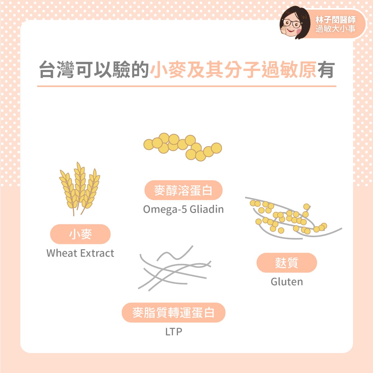 研究發現,有高達65%的驗出有wheat extract (+),但是卻沒有對小麥過敏的症狀,因為小麥的分子過敏原中,和許多花粉分子過敏原有交互作用,因此單驗wheat extract 是不夠的。Omega-5 Gliadin是一個對熱穩定性很高的蛋白質,如果此過敏原是(+),代表容易誘發「小麥-運動誘發的過敏性休克」(wheat-dependent,exercised induced anaphylaxis, WDEIA)。而LTP和 Baker’s asthma (小麥吸入性過敏)很有關聯。當然,黃金準則是請病人做食物激發測驗(Oral Food Challenge),吃了就知道,不過也充滿了高風險,要小心評估~~