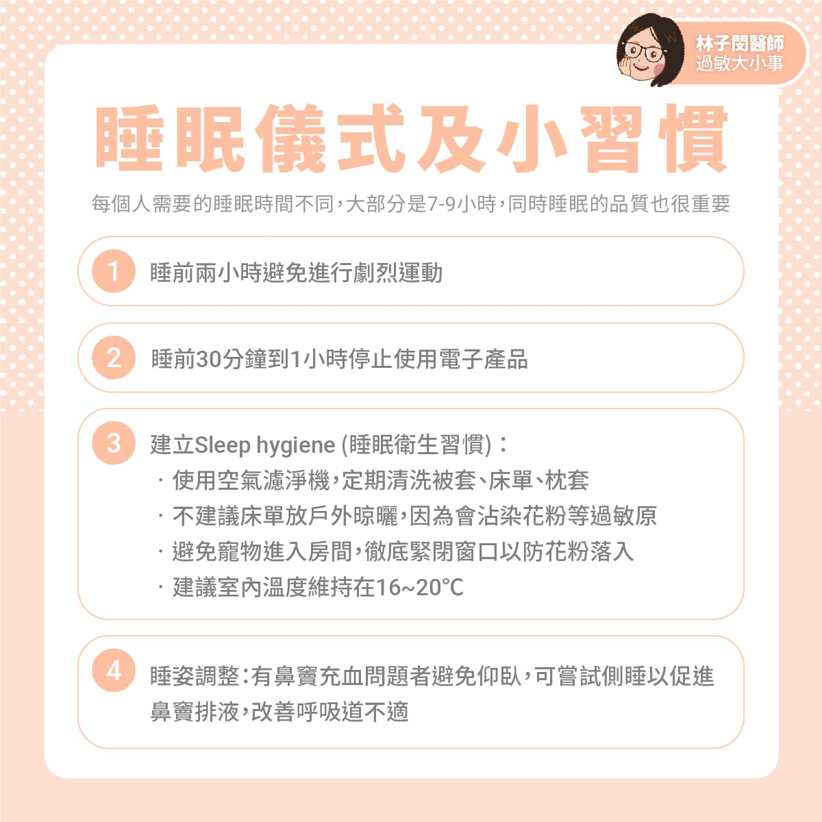 希望每一個過敏病人都可以找到最適合自己的睡眠時間,環境和方式,讓身心更健康!
