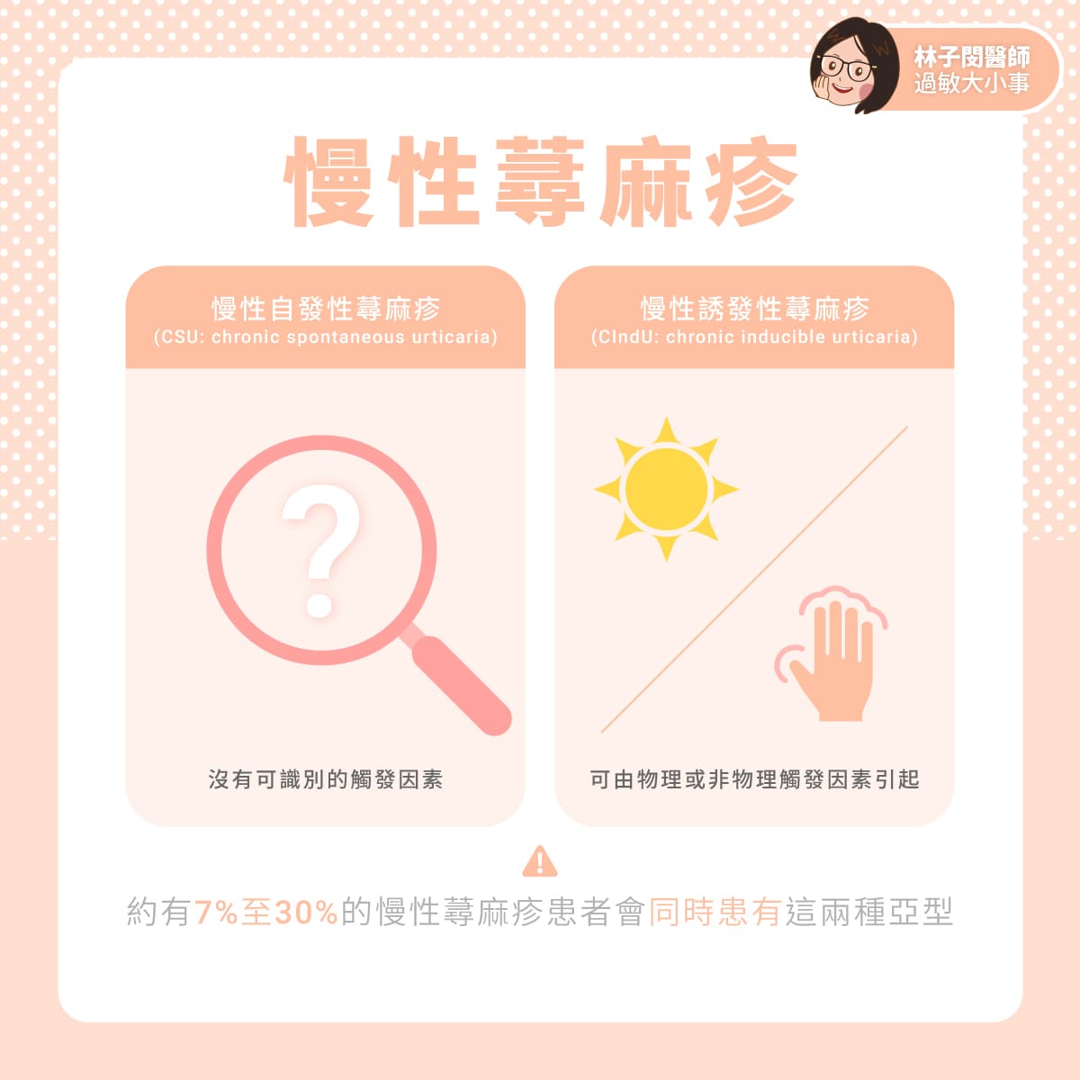 👩🏻⚕️慢性誘發性蕁麻疹 (CIndU: chronic inducible urticaria):可由物理或非物理觸發因素引起 。